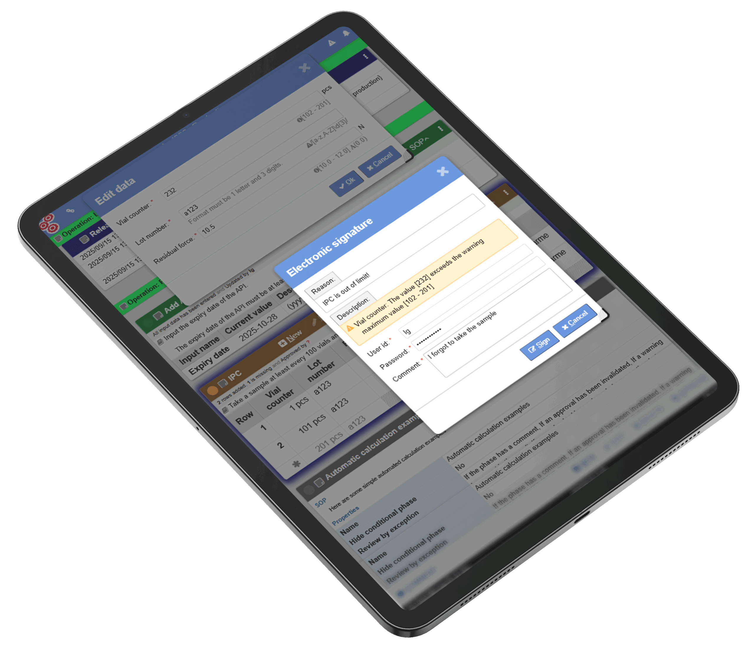 Built-in signatures and workflow guidance based on the ISA88 standard make it easy to create, edit, and approve processes.